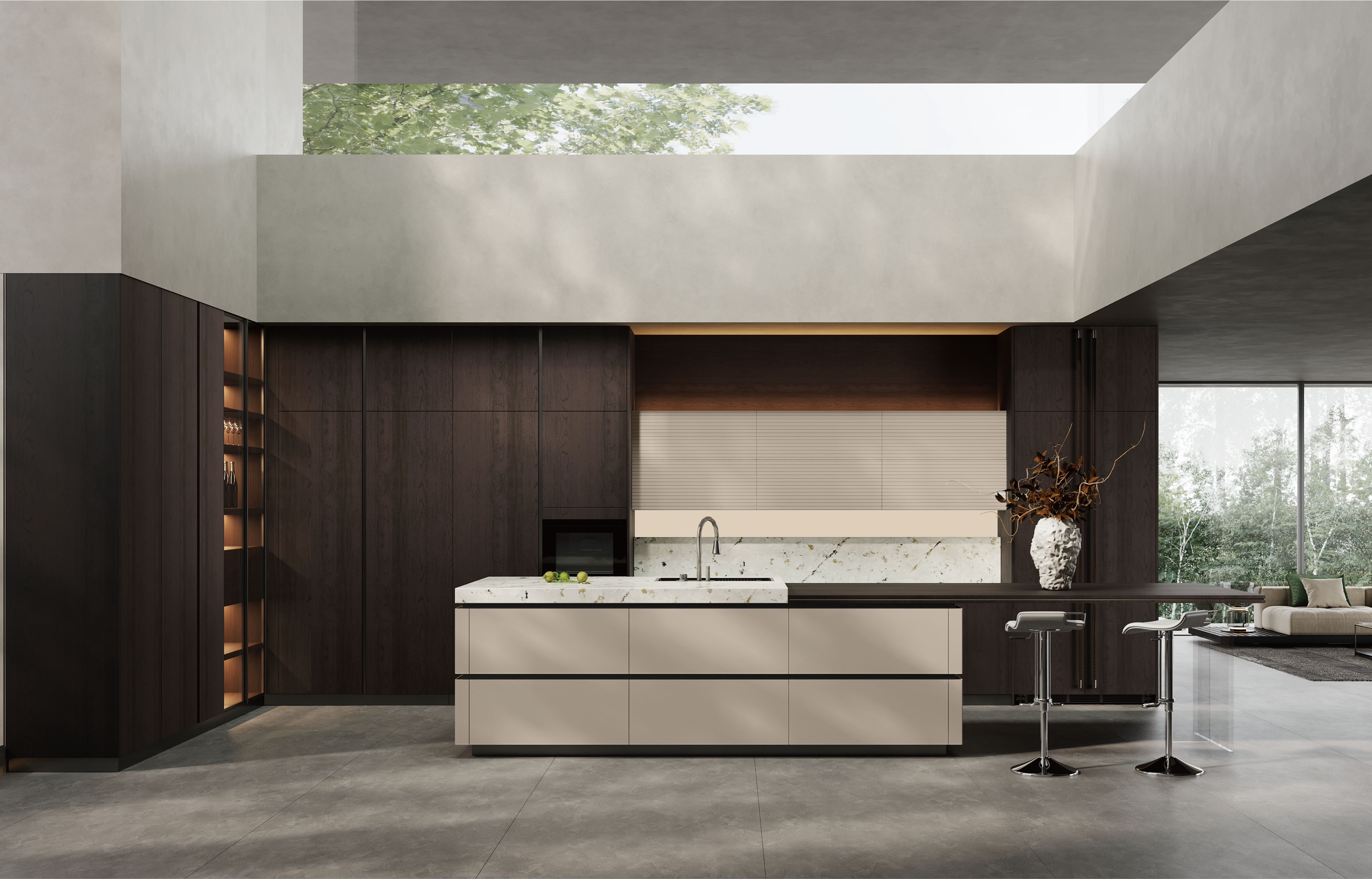 通过usdt厨柜量体裁柜,定制出适合主厨下厨的烹饪区和洗涤区的舒适高度。